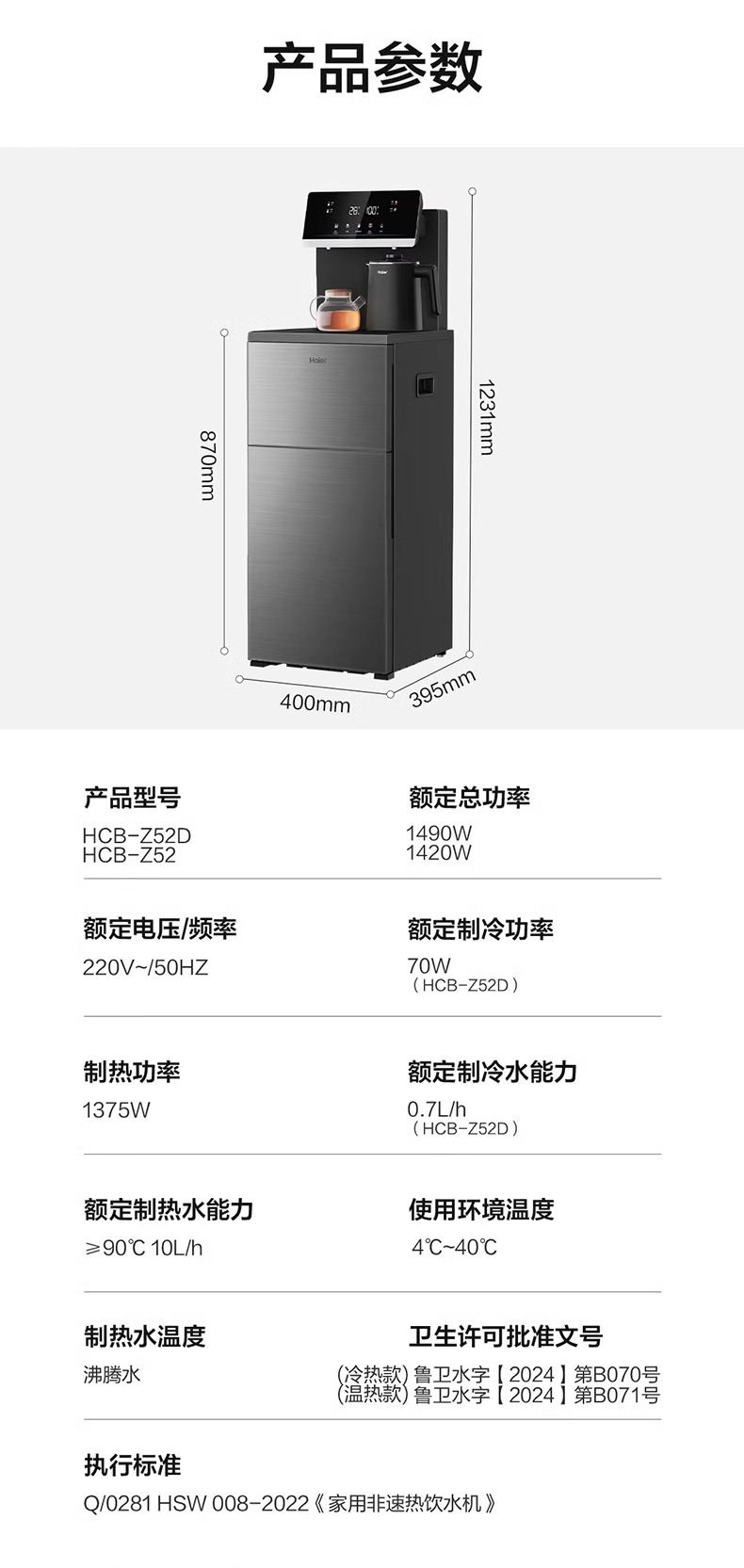 【政府补贴】海尔茶吧机家用新款客厅全自动智能饮水机一体Z52