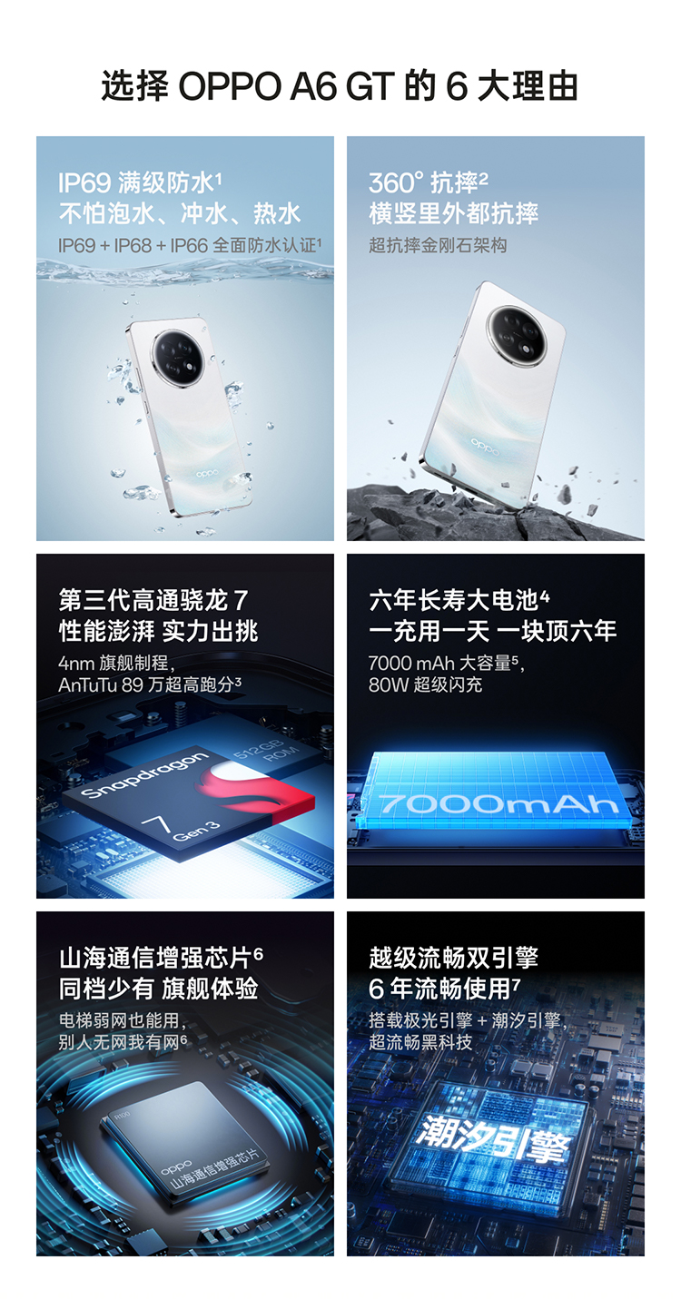 【新品上市】OPPO A6 GT 5G 手机耐用新一代强悍更流畅 IP69 满级防水学生智能手机政府补贴oppo官方旗舰店